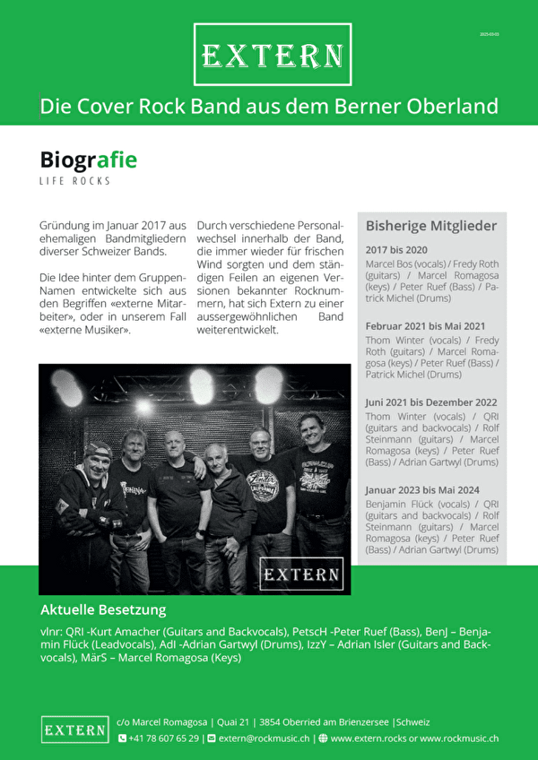 EXTERN Cover-Rock-Bandc/o Marcel Romagosa Quai 21 | 3854 Oberried am Brienzersee